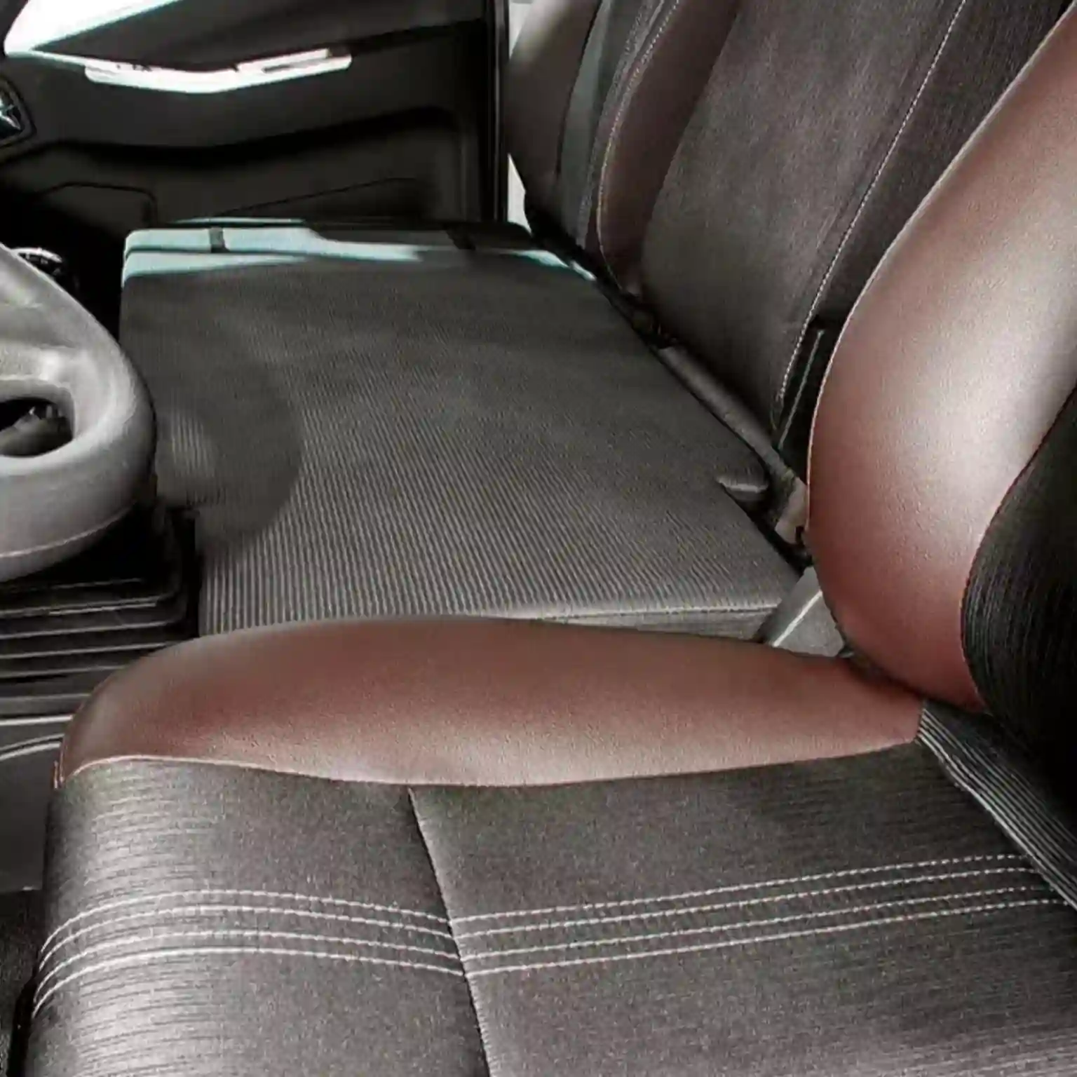 А вот кабина «восьмого» Forland куда более вместительная. Ее ширина (чуть больше 2000 мм) позволяет разместить двоих пассажиров или устроить спальное место. Для этого за спинками сидений спрятан специальный матрас, который позволяет организовать пусть и не очень широкую, но ровную лежанку. Это конечно не кровать магистрального тягача, но прилечь и отдохнуть водитель всегда сможет.